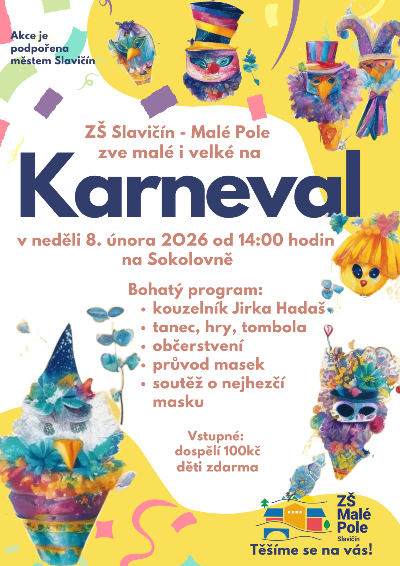 Zveme všechny děti, rodiče, prarodiče na Karneval s Jirkou Hadašem, který bude plný her, kouzel a zábavy.