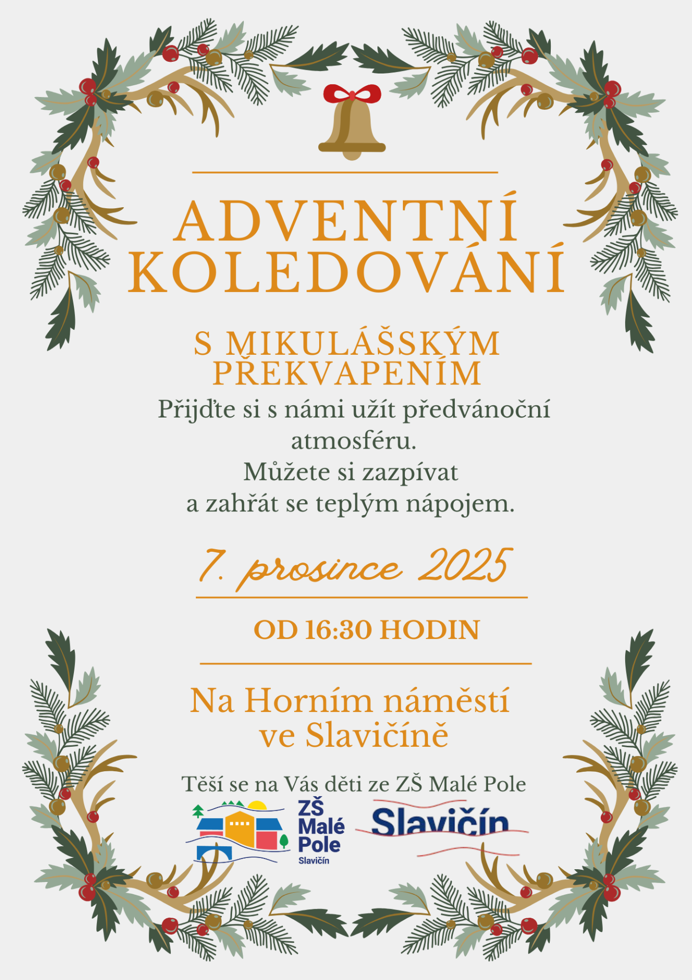 Srdečně zveme všechny rodiče, děti a přátele školy na adventní setkání, které se uskuteční druhou adventní neděli. Čeká nás společné zpívání s dětmi, příjemná vánoční atmosféra a samozřejmě i mikulášské překvapení. Přijďte s námi prožít hezké odpoledne plné pohody a těšení na Vánoce.