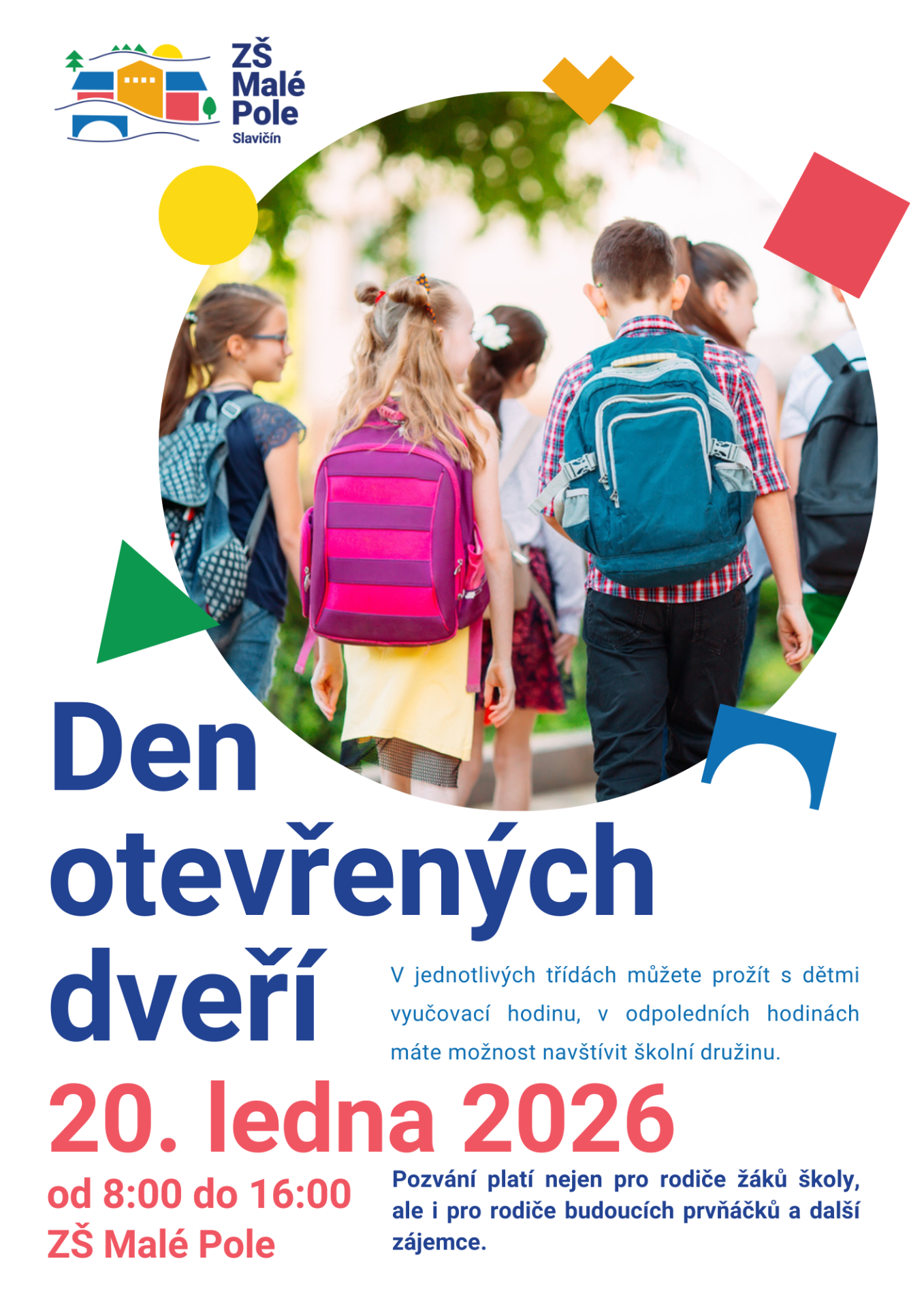 srdečně vás zveme na Den otevřených dveří na naší základní škole. Přijďte se podívat, jak to u nás chodí, nahlédněte do tříd, seznamte se s učiteli a poznejte prostředí, kde se děti cítí bezpečně a kde s radostí objevují svět. Čeká vás prohlídka školy, ukázky z výuky a prostor pro vaše dotazy. Těšíme se na společné setkání!