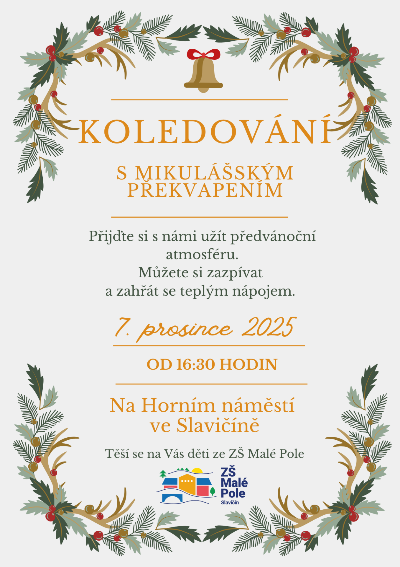 Srdečně zveme všechny rodiče, děti a přátele školy na adventní setkání, které se uskuteční druhou adventní neděli. Čeká nás společné zpívání s dětmi, příjemná vánoční atmosféra a samozřejmě i mikulášské překvapení. Přijďte s námi prožít hezké odpoledne plné pohody a těšení na Vánoce.