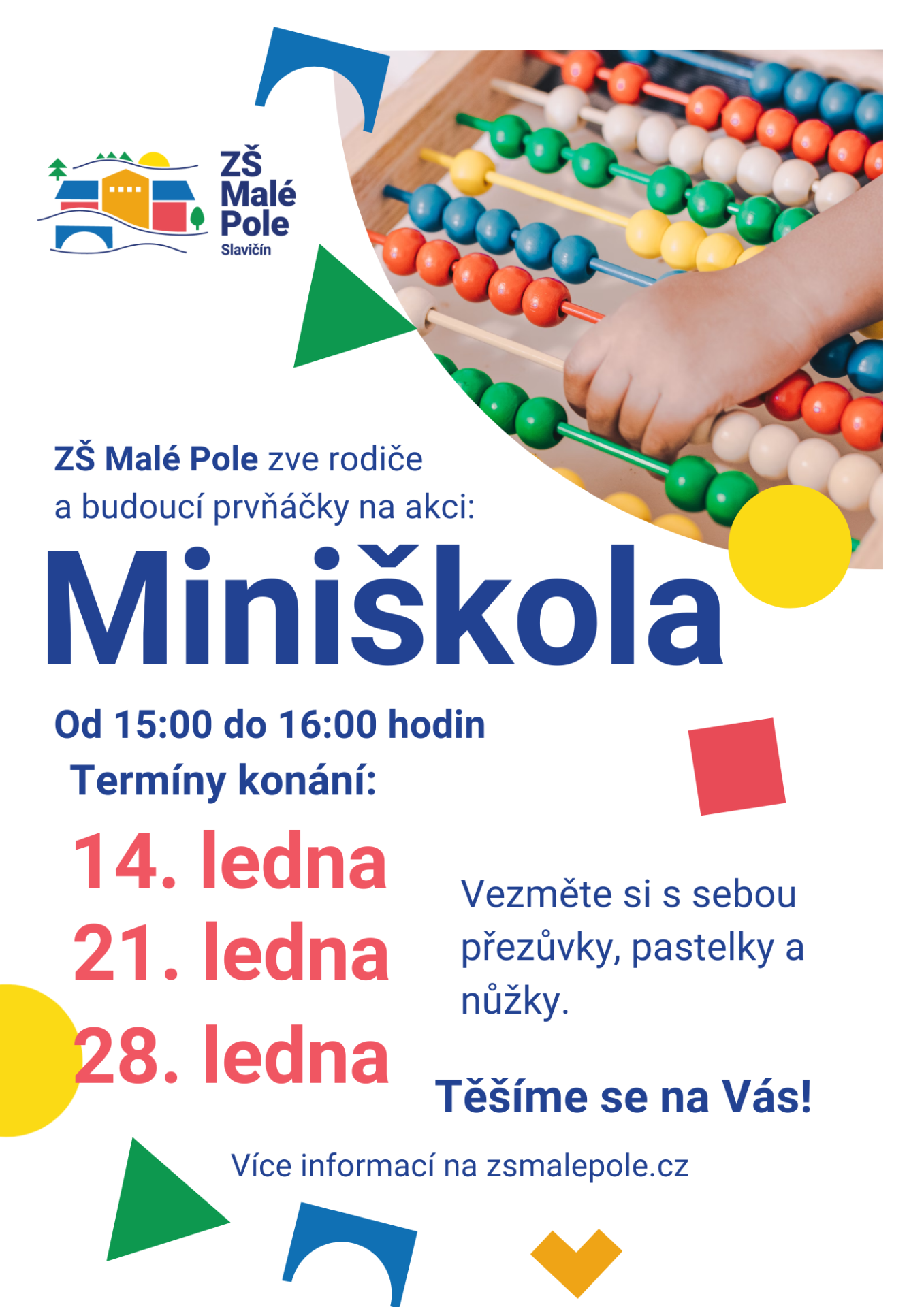blíží se velký krok – vstup do první třídy! Aby byl tento začátek co nejpříjemnější a děti do školy přicházely s radostí a sebejistotou, připravili jsme pro budoucí prvňáčky MINIŠKOLY – zábavné odpoledne, kde si mohou nanečisto vyzkoušet, jak to ve škole vlastně chodí.